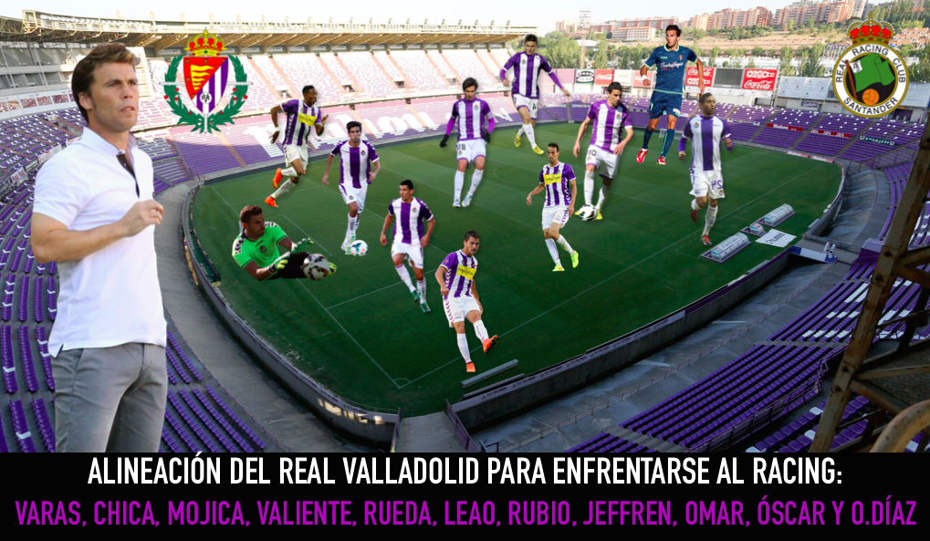 Once del Real Valladolid: Varas, Chica, Rueda, Valiente, Mojica, Álvaro Rubio, André Leão, Jeffren, Óscar, Omar y Óscar Díaz.