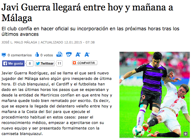 Link: http://www.malagahoy.es/article/malagacf/1938005/javi/guerra/llegara/entre/hoy/y/manana/malaga.html#.VLN6zDk31Xs.twitter