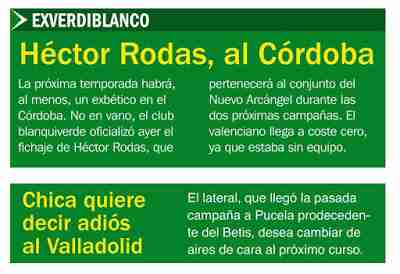 El Diario deportivo de Sevilla ESTADIO DEPORTIVO ha confirmado en su edición impresa del 28 de Junio lo que Pasión blanquivioleta comentó el viernes 26 de Junio en su programa de Radio, y es que Javi Chica podría haber solicitado su salida al Real Valladolid porque según dijo Pasión Blanquivioleta cuenta con una oferta interesante del Espanyol. En Estadio Deportivo lo dicen de la siguiente forma: