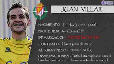 En los tres años en los que Juan Villar ha permanecido en el club amarillo, el ascenso no ha sido una realidad. Tristemente, el proyecto no ha conseguido el objetivo primordial y Juan Villar abandona el Ramón de Carranza tras 114 partidos y 42 goles. Con su marcha, el equipo de Claudio Barragán pierde a una de sus estrellas. Se trata de un jugador con un potencial mucho más elevado que el que ofrece la Segunda división B. Sus cifras goleadoras y su influencia en el juego hablan de un gran futbolista, un jugador con potencial para aportar mucho rendimiento en el Real Valladolid 2015/2016. Así lo cree el club blanquivioleta. Tal es la confianza sobre el canterano del Recreativo que su cara es la primera que se presenta en este el segundo proyecto de Braulio Vázquez en el José Zorrilla.