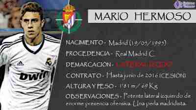 Este joven futbolista de banda llega a la entidad pucelana a préstamo durante los próximos 12 meses. Tras la desaparición del Real Madrid C, equipo en el que formó el nuevo blanquivioleta la temporada pasada, el club blanco no se ha querido desprender de una de sus mayores joyas. Con la cesión al Real Valladolid, Mario Hermoso cumple una de sus últimas fases de formación para intentar cumplir el sueño de llegar al primer equipo merengue.