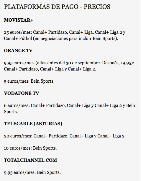 Inicio Mercado y Rumores Plataformas de pago para ver el fútbol Mercado y Rumores Plataformas de pago para ver el fútbol Por webmaster - 11 agosto, 2015 0 Compartir en Facebook Compartir en Twitter LIGA ADELANTE Canal+ Liga 2 – Los 11 partidos y un carrusel. Artículo relacionadosMás del autor Mercado y Rumores Iván Garriel renueva hasta 2029 Mercado y Rumores OFICIAL: Fran Escribá es el nuevo entrenador del Real Valladolid Mercado y Rumores OFICIAL: El Real Valladolid destituye a Tevenet