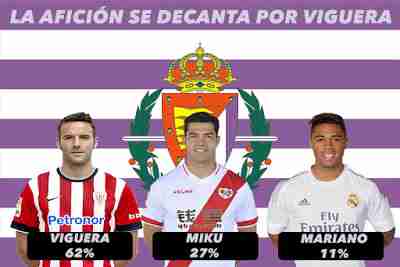Desde Pucela Fichajes hamos propuesta una encuesta para saber cual es el delantero que prefiere la afición de cara al mercado de invierno dentro de los futbolistas que se encuentran en la agenda de Braulio Vázquez. De los tres delanteros que incluimos en la encuesta, el futbolista más votado con el 62% de los votos fue Borja Viguera del Athletic Club, seguido por el delantero del Rayo Vallecano Miku con el 27% de los votos, y el menos votado de la encuesta ha sido Mariano Díaz del Castilla con el 11%. Los resultados de esta encuesta dejan claro que el delantero preferido por la afición para reforzar la delantera blanquivioleta es Borja VIGUERA.