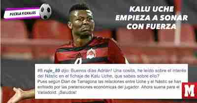 Según Adrián González del Diario MARCA, el delantero Kalu Uche ha dejado de sonar con fuerza para el Nástic y el equipo que más suena para contar con sus servicios es el Real Valladolid. En la pregunta que le hicieron sobre el futbolista nigeriano respondió así: Buenos días Adrián! Una cosita, he leído sobre el interés del Nàstic en el fichaje de Kalu Uche, que sabes sobre ello?