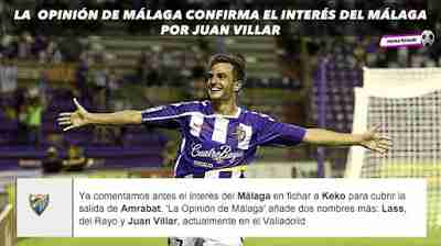 Como ya adelantamos hace un par de días a través de nuestro blog, el Málaga había preguntado por el futbolista del Real Valladolid Juan Villar y hoy en LA OPINIÓN DE MÁLAGA, recogen el nombre del andaluz como uno de los candidatos para reemplazar a Amrabat tal y como recoge el Diario MARCA en su edición de rumores de fichajes. Además de Villar, también suenan para reemplazar al marroquí los futbolistas Keko (ex del Real Valladolid) y Lass.