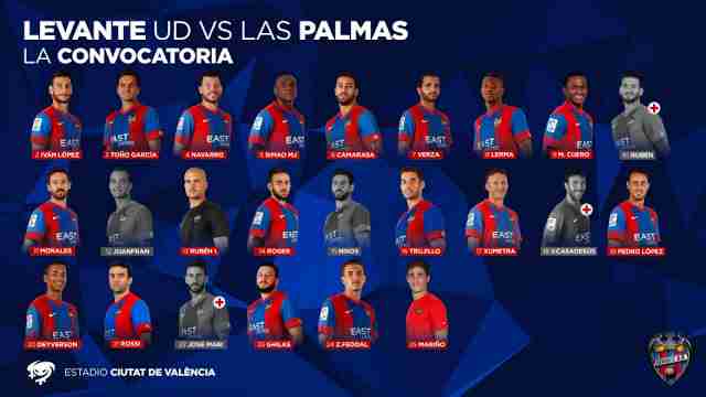 Rubi, a la conclusión del entrenamiento matinal que se ha desarrollado en las instalaciones del feudo del Ciutat de València desde las 11:00 horas, ha confirmado el listado de los jugadores convocados para el partido que mañana enfrentará al Levante y la U.D. Las Palmas en el Estadio Ciutat de València, desde las 20:30 horas, correspondiente a la jornada vigesimoprimera de la Liga BBVA en la que se encuentra el futbolista seguido por el Real Valladolid Roger Martí.