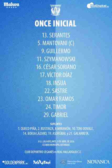 Los 3 ex futbolistas del Real Valladolid que estaban convocados por el Leganés para enfrentarse al Pucela, serán titulares. Pese a que Timor y Ramos se encontraban tocados, han llegado a tiempo y jugarán contra el Real Valladolid. De esta forma, el equipo blanquivioleta se verá las caras desde las 20.15 con Sastre, Omar Ramos y Timor.