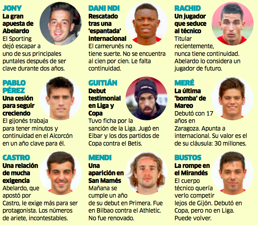 Además de Rodríguez, otros nueve han debutado con Abelardo, entre ellos un futbolista que juega actualmente en el Real Valladolid: Jony, Ndi, Rachid, Pablo Pérez, Guitián, Meré, Castro, Mendi y Bustos.