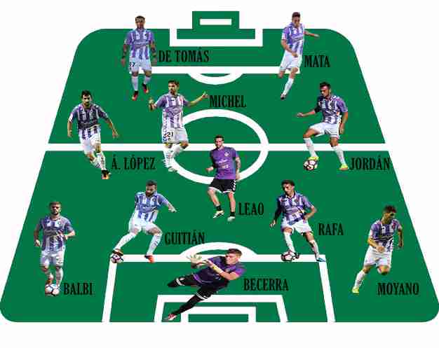 La alineación con la que podría saltar al campo el Real Valladolid contra el Numacia en el Estadio de Los Pajaritos podría ser la siguiente según los entrenamientos vistos: Becerra, Moyano, Balbi, Guitián, Rafa, Leao, Jordán, Álex López, Michel, Mata y Raúl de Tomás. La posible baja más significativa es la del central Álex Pérez que podría quedarse fuera del 11 titular tras 6 jornadas consecutivas disputando los 90 minutos con el equipo. La otra novedad es la de que Raúl de Tomás y Jaime Mata podrían saltar de inicio juntos por primera vez en toda la temporada.