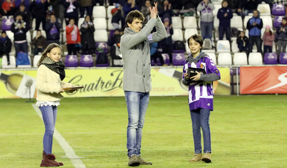 Después, el presidente de la Federación de Peñas, José Antonio Pérez, le entregó una placa “por su juego y su entrega” como jugador del Real Valladolid y en nombre de todos los aficionados que durante su etapa como futbolista le tributaron ovaciones para el recuerdo.