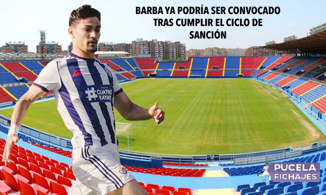 Barba podría entrar en su primera convocatoria con el Real Valladolid tras cumplir con la sanción que arrastraba, Sergio podrá contar con él y todo apunta a que sí entrara en la lista de Sergio para jugar contra el Levante en el Ciutat de Valencia.