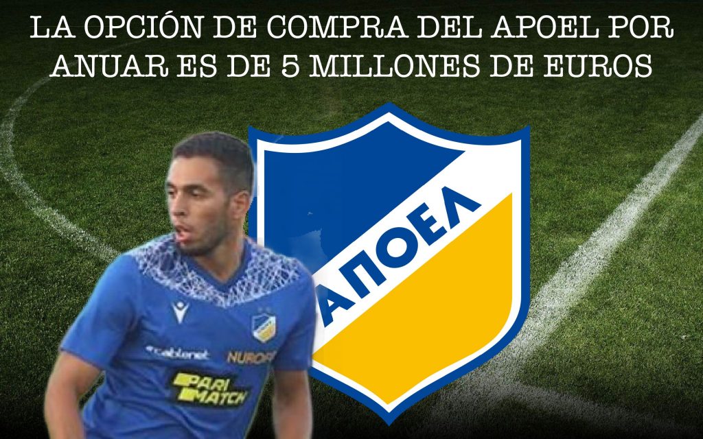 El canterano del Real Valladolid Anuar Tuhami que recientemente ha sido cedido al APOEL Nicosia por una temporada con opción a compra ha llegado hoy a tierras chipriotas para jugar la Liga de Chipre y la Europa League. La prensa chipriota señala lo mismo que la griega, e informan que la opción de compra está valorada en 5 millones de euros, cantidad sensiblemente inferior a su cláusula, que que asciende a 25 kilos.