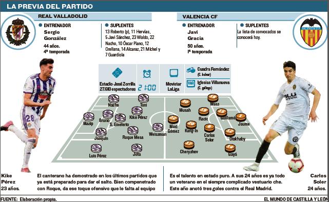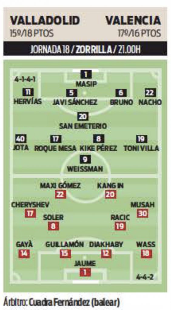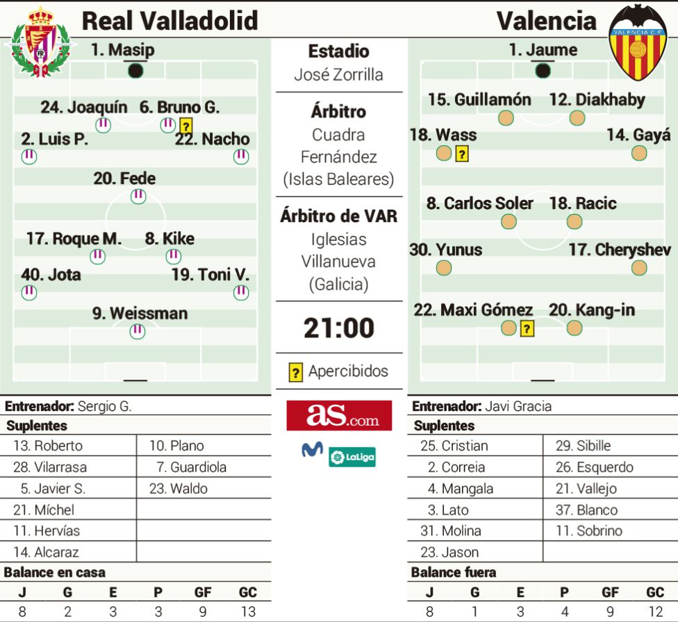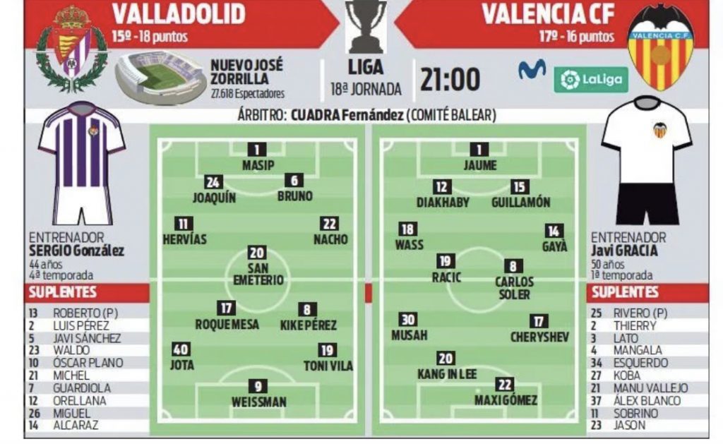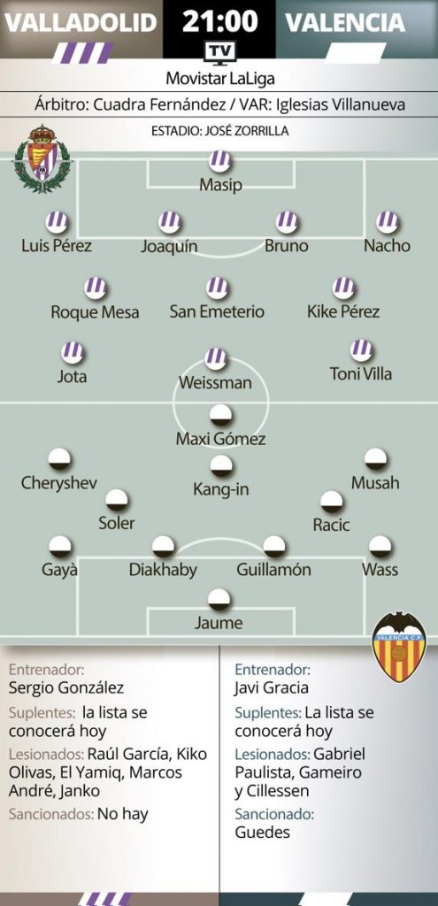 Te mostramos las posibles alineaciones del Real Valladolid para enfrentarse en Zorrilla al Valencia según la prensa.