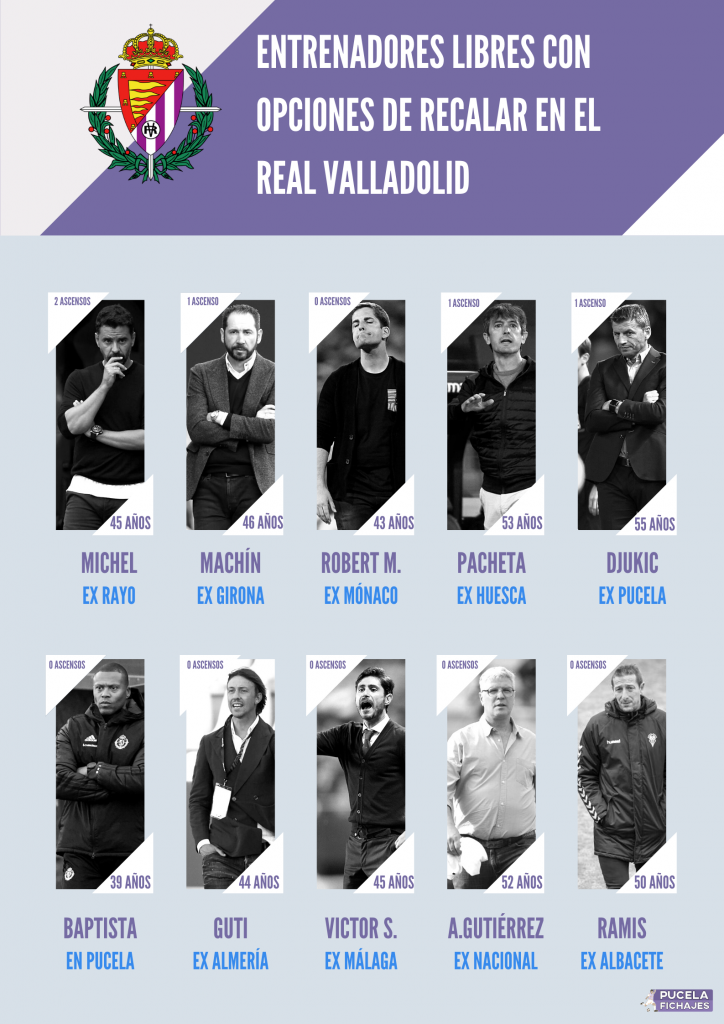 - Djukic: Viejo conocido de la afición pucelana, su regreso produciría ilusión, pero sus etapas en otros clubes no terminan de situarle como nuevo entrenador del Pucela. Con el Real Valladolid logró un ascenso.