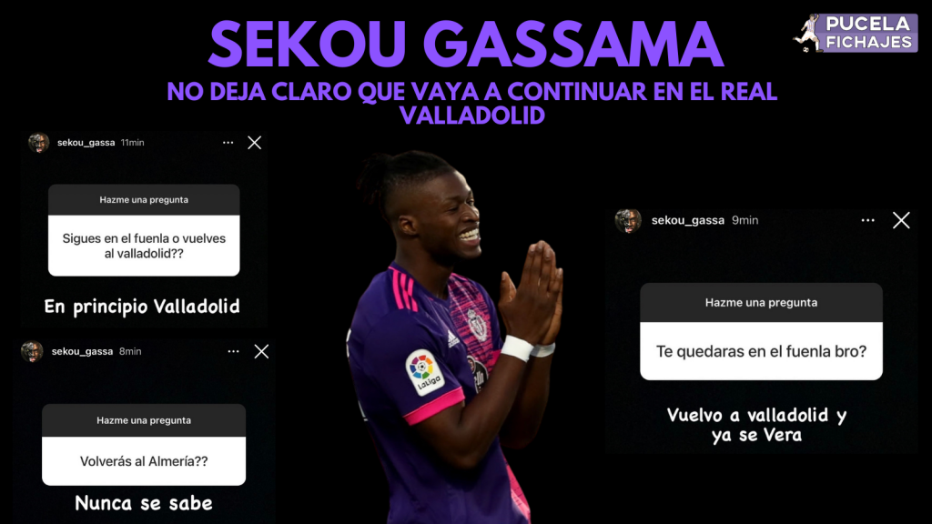 El delantero del Real Valladolid Sekou Gassama que la temporada pasada jugó cedido en el Fuenlabrada ha respondido a una serie de preguntas en Instagram a las personas que se las formulaban, varias de ellas han sido en relación a su futuro y en todas ellas ha sido ambiguo y no ha dejado claro que vaya a continuar en el Real Valladolid, pese a que sea lo más probable.