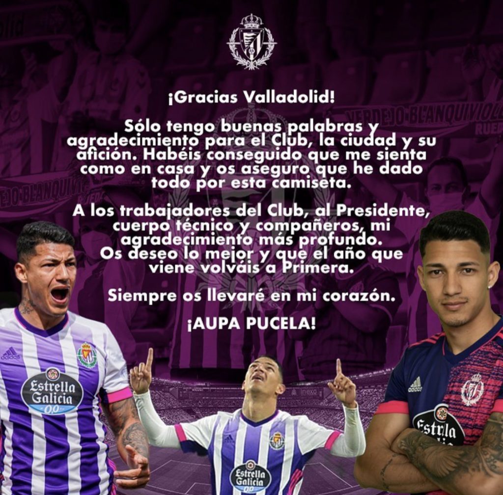 Marcos André ya no es jugador del Real Valladolid, hace unos minutos se ha hecho oficial su fichaje por el Valencia, y el brasileño en las redes sociales se ha querido despedir a través de una carta: «¡Gracias Valladolid! Solo tengo buenas palabras y agradecimiento para el club, la ciudad y su afición. Habéis conseguido que me sienta como en casa y os aseguro que he dado todo por esta camiseta. A los trabajadores del club, al presidente, cuerpo técnico y compañeros, mi agradecimiento más profundo. Os deseo lo mejor y que el año que viene volváis a Primera. Siempre os llevaré en mi corazón. ¡Aúpa Pucela!».