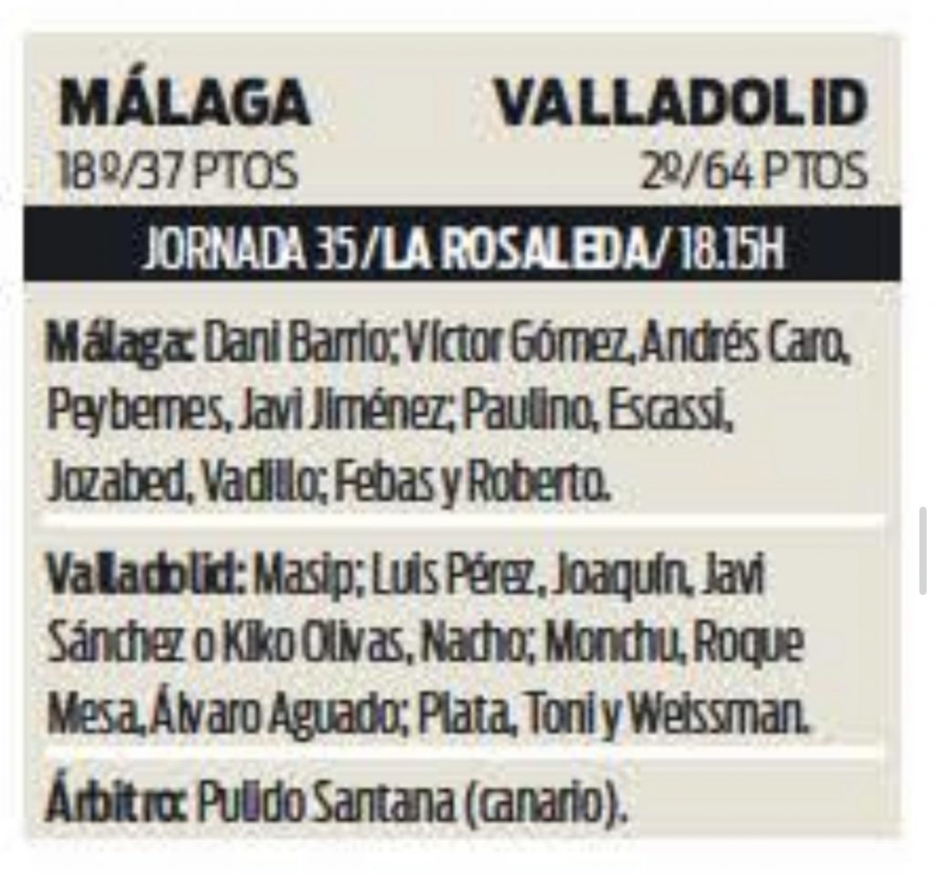 Inicio Noticias de actualidad Posibles alineaciones del Real Valladolid para jugar contra el Málaga según la... Noticias de actualidad Posibles alineaciones del Real Valladolid para jugar contra el Málaga según la prensa Por Gonzalo - 9 abril, 2022 0 Compartir en Facebook Compartir en Twitter Estos son los posibles “11” hoy del Real Valladolid según la prensa para enfrentarse al Málaga en La Rosaleda: MARCA AS MUNDO DEPORTIVO SPORT OPINION MÁLAGA Artículo relacionadosMás del autor Noticias de actualidad Arnu debuta con doblete en el Real Madrid C Noticias de actualidad David Torres marca su primer gol como jugador del Real Valladolid Noticias de actualidad El Real Valladolid vuelve a dejar su portería a cero tras ocho partidos encajando goles