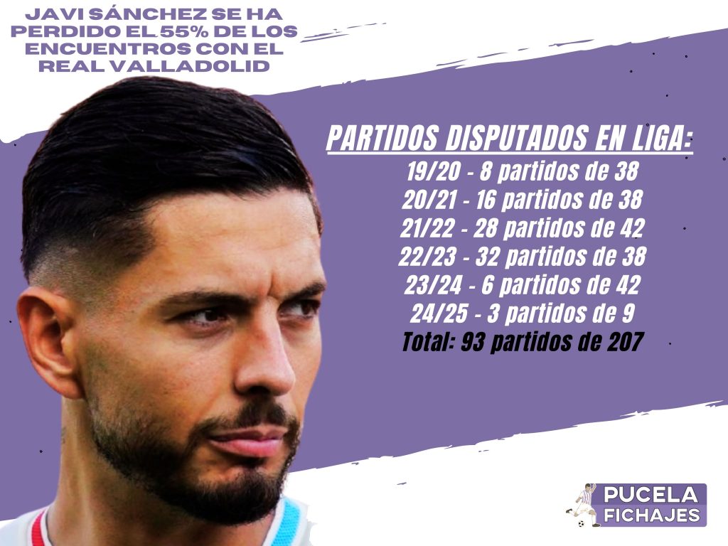Javi Sánchez llegó al Real Valladolid en el verano de 2019 procedente del Real Madrid en calidad de cedido, un año después fue comprado en propiedad pagando 3 millones por el 50% de los derechos del futbolista. Desde que llegase a Pucela solo ha podido disputar el 45% de los encuentros principalmente debido a las lesiones que le han tenido apartado grandes estadios de tiempo.