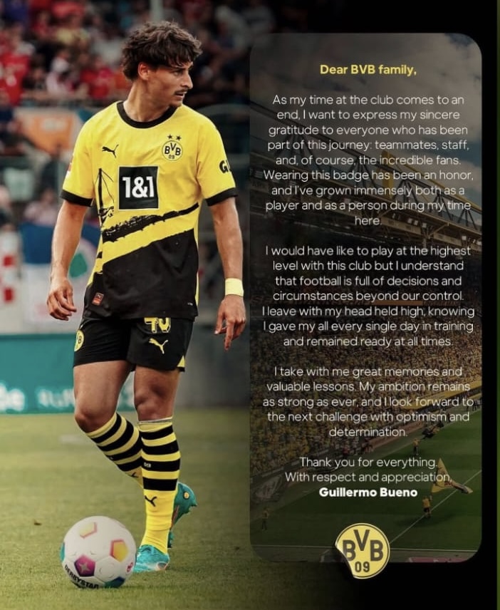 A medida que mi etapa en el club llega a su fin, quiero expresar mi más sincero agradecimiento a todos los que han sido parte de este viaje: compañeros de equipo, cuerpo técnico y, por supuesto, a los increíbles aficionados. Llevar este escudo ha sido un honor, y he crecido enormemente tanto como jugador como persona durante mi tiempo aquí.