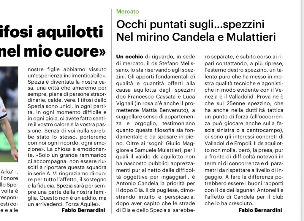 Vuelve a sonar para el Real Valladolid un jugador que estuvo la temporada pasada cedido, en el diario La Nazione en su edición impresa informan que el Real Valladolid es uno de los equipos interesados en el jugador del Venezia Antonio Candela, además, también le pretenden otros dos conjuntos italianos: «Para el Spezia Antonio Candela es la prioridad tras la salida de Elia. El director deportivo de Apulia, demostrando intuición y perspicacia, tras comprender que los caminos de Elia y Spezia se separarían, actuó de inmediato contactando, en varias ocasiones, al lateral derecho espeziano, un talento puro que ha demostrado claramente cualidades técnicas y competitivas con el Venezia y el Real Valladolid. Prueba de ello es que el jugador de 25 años de La Spezia, cuya versatilidad táctica es una de sus virtudes despierta un gran interés en el Real Valladolid y el Empoli. Sin embargo, el director deportivo del Aquilotto no se rinde, a pesar de las considerables dificultades en cuanto a la competencia y los parámetros salariales que debe respetar. La buena relación con el director deportivo del equipo lagunero, Antonelli, y el cariño de Candela por el club que lo vio crecer podrían marcar la diferencia».